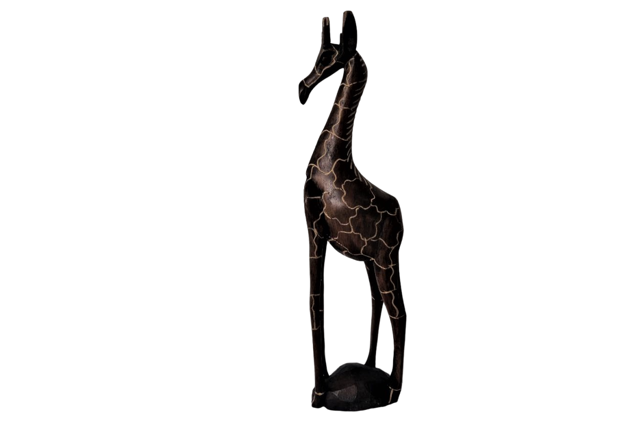 Jirafa de madera africana tallada a mano por un grupo de mujeres extraordinarias, hecha de madera de origen africano Angola. Figura de Jirafa, novedosos, originales, exclusivos, cada estatua es una obra maestra única y especial, insuperable. (Solo hemos traído 20 unidades desde África).